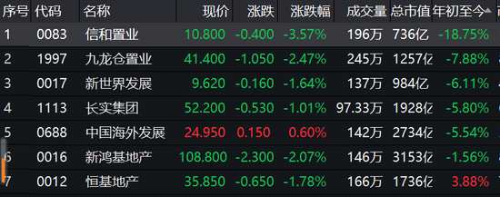 9月2日消息,今年7月全港私人住宅樓價指數(shù)降至394.4,按月跌0.1%,連跌兩個月。專家認為,8月跌幅或擴大至1%。香港本地地產(chǎn)股繼續(xù)下挫,信和置業(yè)大跌3.6%,年初至今累跌18.75%,九龍倉置業(yè)跌2.47%,【新世界(600628)、股吧】發(fā)展跌1.64%,長實跌1%,性鴻基跌2%,恒基跌1.78%。