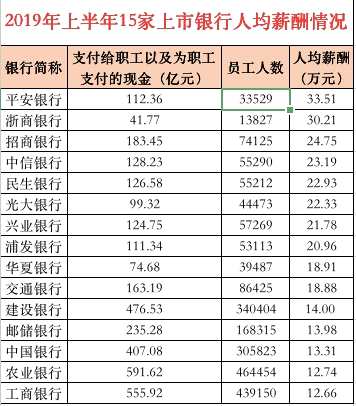 上市銀行終于完成中報(bào)披露,上半年銀行業(yè)人均薪酬的情況也浮出水面。
