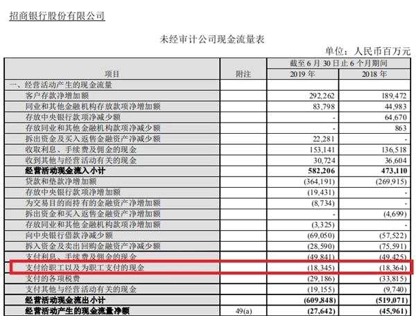 注:招商銀行使用的2019年中報(bào)披露的2018年上半年支付的現(xiàn)金183.64億,這一數(shù)據(jù)和該銀行2018年中報(bào)數(shù)據(jù)略有不同。