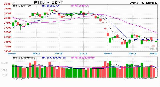 摘要: 9月3日消息,周一(9月2日)美股因勞動節(jié)休市,但當前貿(mào)易局勢依然令市場感到擔憂,日前美國三大期指普跌。今日早盤,恒指走勢反復。截至午盤,港股恒指跌0.1%,報25601.7點;國企指數(shù)跌0.6%,報