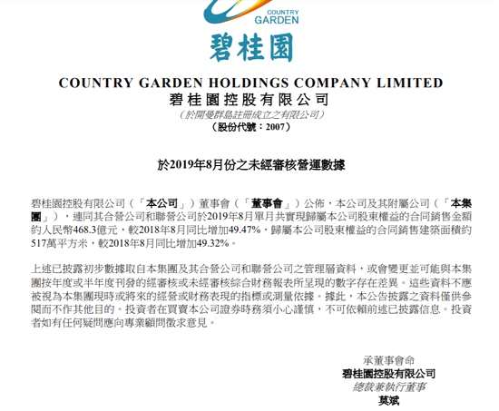 碧桂園:8月合同銷(xiāo)售金額468.3億 同比增加49.47%
