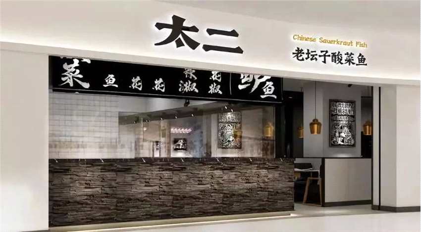 2015年,是九毛九的轉(zhuǎn)折年。 九毛九以山西面食為主,主打菜品為燜面、炸醬面、酸菜牛肉面等面食快餐。但是此時(shí)的九毛九在經(jīng)營上遇到瓶頸,客流減少,凈利潤下滑。在其8家全資子公司中,有3家子公司出現(xiàn)虧損。 如何改變這一狀態(tài)? 九毛九開啟了兩項(xiàng)新舉措:一是做爆品餐飲孵化,二是對外投資餐飲品牌。 這一年,第一家太二酸菜魚在廣州郊區(qū)開業(yè)。 單從名字上就能看出,此時(shí)的飲食已經(jīng)向年輕化轉(zhuǎn)型。太二酸菜魚的門店裝修注重潮流,但品類主打酸菜魚。