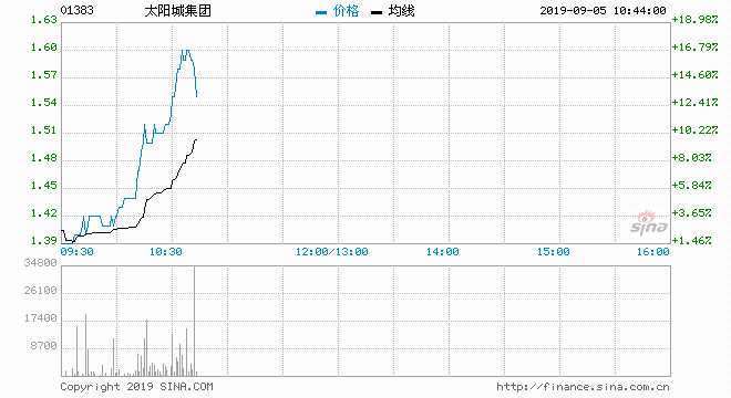 太陽城集團(tuán)(01383)現(xiàn)價(jià)升10.22%,報(bào)1.51元;成交約1350萬股,涉資1946萬元.盤中高見1.52元,破50天線(1.405元)及250天線(1.474元).該股暫連升四日,累計(jì)升幅達(dá)30%。