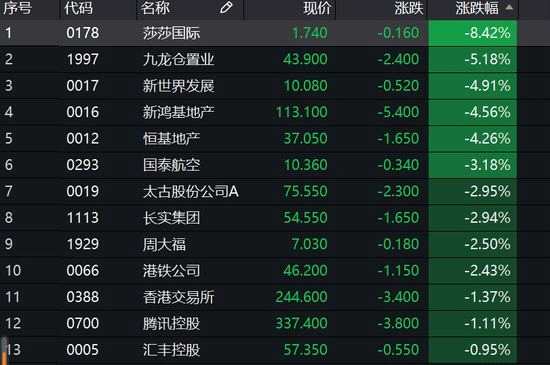 恒生指數(shù)午后快速跳水,下跌近1%。