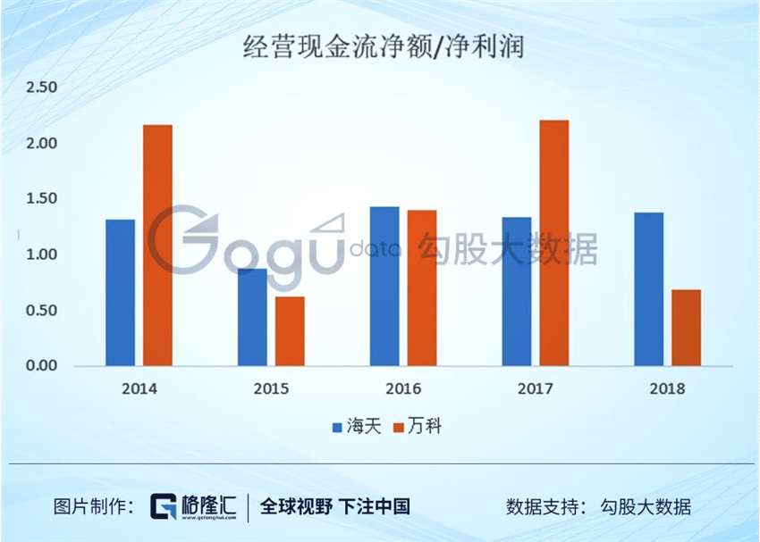 利潤的質(zhì)量一方面指含現(xiàn)金量,海天的經(jīng)營性現(xiàn)金流凈額非常漂亮,長年穩(wěn)定地超過凈利潤,萬科以前一般,最近幾年改善了許多,其他不少房企,經(jīng)營性現(xiàn)金流凈額長年是負的。
