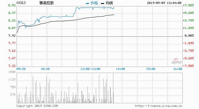摘要: 雅高控股(03313)現(xiàn)價(jià)升7.2%,報(bào)8.49元,盤中高見(jiàn)8.5元,創(chuàng)歷史新高;成交約377萬(wàn)股,涉資3137萬(wàn)元.該股暫連揚(yáng)12日,以現(xiàn)價(jià)計(jì),累漲71.2%?,F(xiàn)時(shí),恒生指數(shù)報(bào)26700,升9點(diǎn)或升