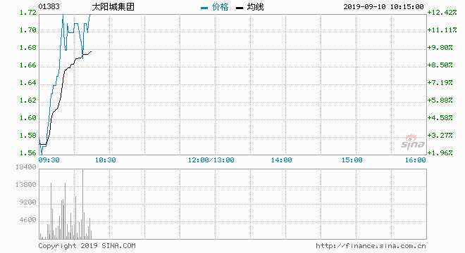 太陽城集團(tuán)(01383)現(xiàn)價升7.19%,報1.64元;成交約422萬股,涉資680萬元,主動買盤79%.盤中高見1.65元,創(chuàng)近兩個月高位。
