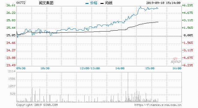 閱文集團(tuán) (00772) 26.50元 升5.79%