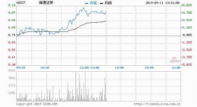 海通證券現(xiàn)升逾4% 暫冠國(guó)指股