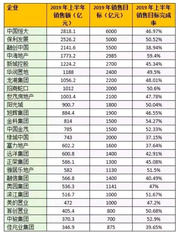 上半年房企銷售目標完成情況