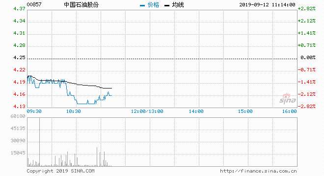 中國石油 (00857) 4.14元 跌2.59% ∥