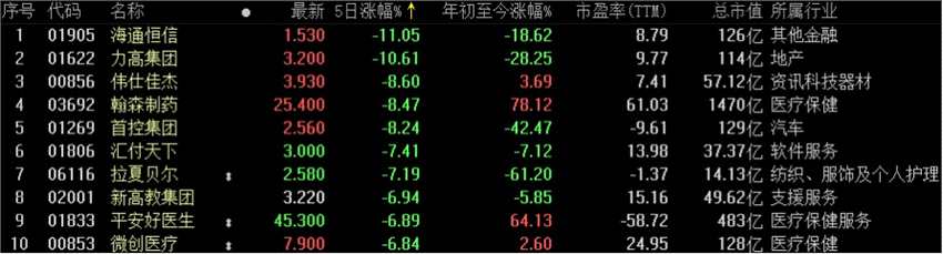 本周港股通標(biāo)的漲跌幅榜