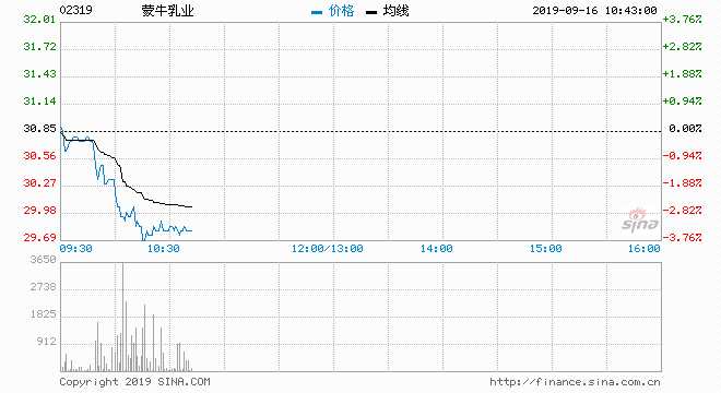 蒙牛乳業(yè)(02319) 30.00元 跌2.76%
