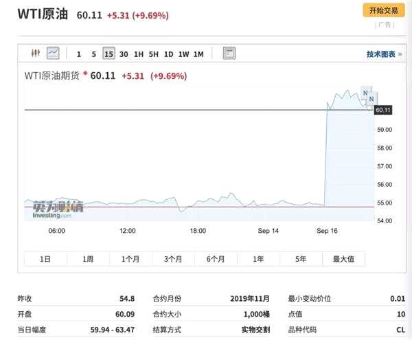9月16日,布倫特原油最高一度漲近19%,創(chuàng)1991年以來(lái)的28年最大日內(nèi)漲幅。