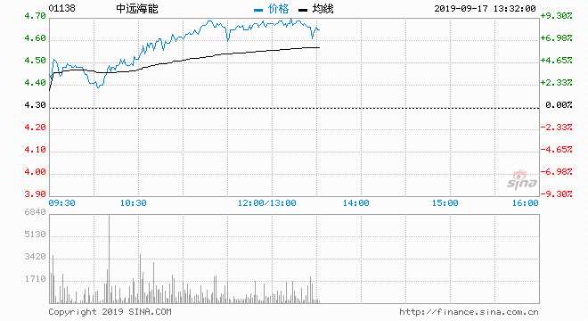 中遠(yuǎn)海能(01138) 4.69元 升9.07%