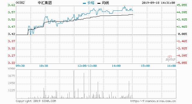 中匯集團(tuán)(00382) 3.58元 升4.68%