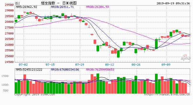 9月19日消息,美股周三收盤漲跌不一。美聯(lián)儲宣布降息25個基點。鮑威爾承認貿(mào)易與全球經(jīng)濟增長風(fēng)險增加,稱將采取適當(dāng)措施以維持經(jīng)濟增長。香港金管局宣布將基準(zhǔn)利率下調(diào)25個基點至2.25%。今日開盤,港股恒指高開0.25%,報26820.73點;國企指數(shù)漲0.31%,報10511.41點;紅籌指數(shù)漲0.06%,報4311.12點。