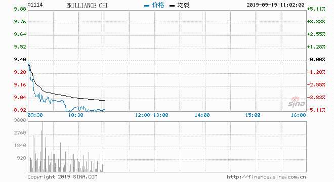 摘要: 9月19日消息,華晨中國(guó)股價(jià)下跌4.89%,報(bào)3.94港元,此前遭杰富瑞下調(diào)評(píng)級(jí)。8月23日,華晨中國(guó)(01114.HK)披露2019年上半年未經(jīng)審核的中期財(cái)務(wù)業(yè)績(jī)報(bào)告。