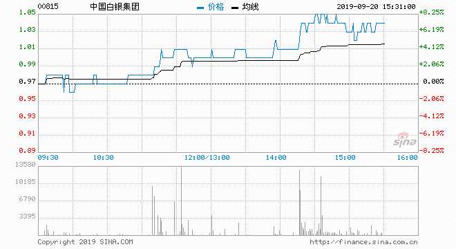 中國白銀(00815) 1.04元 升7.22%