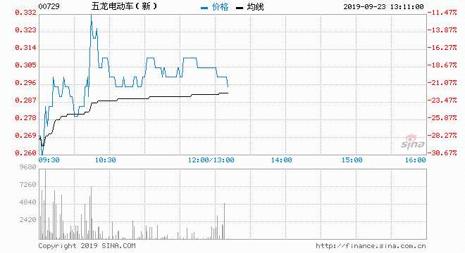 五龍電動車(舊)(02949) 0.280元 跌24.32%