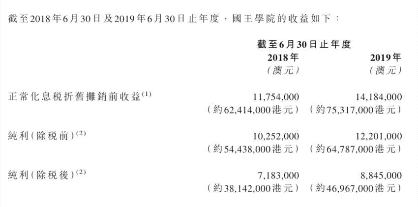 截止2019年6月30日止,這所學(xué)校實(shí)現(xiàn)純利(除稅后)約4696.7萬(wàn)港元(4227.03萬(wàn)元)。