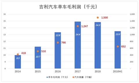 2014年吉利汽車毛利潤率較2013年降了2個百分點,每賣一輛車只賺9500元。