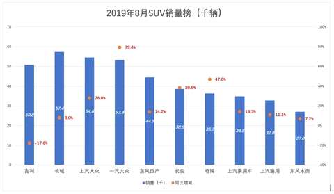 上汽大眾、一汽大眾在品牌、空間、配置、價格等維度對吉利構(gòu)成強大壓制,8月份銷量均超越吉利,南北大眾SUV車型單月銷量逼近11萬輛。