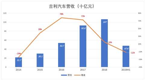 有人預(yù)言吉利汽車將會盛極而衰,不料2019年H1營收真下降了11%。
