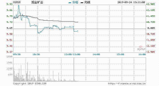 招金礦業(yè)(01818) 9.82元 升1.76%