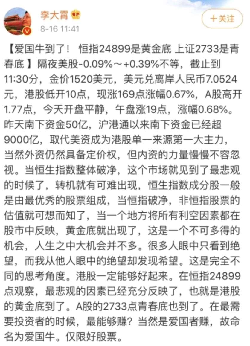 最近,李大霄又提出股市新詞“愛國(guó)?!薄?/p>