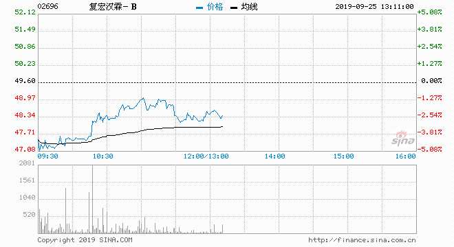 9月25日消息,復宏漢霖今日在港交所上市,開盤跌4.33%,報47.45港元。