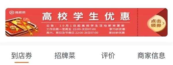 之前,海底撈面向的大學(xué)生6.9折優(yōu)惠是周一至周日通用的,具體打折時間為: