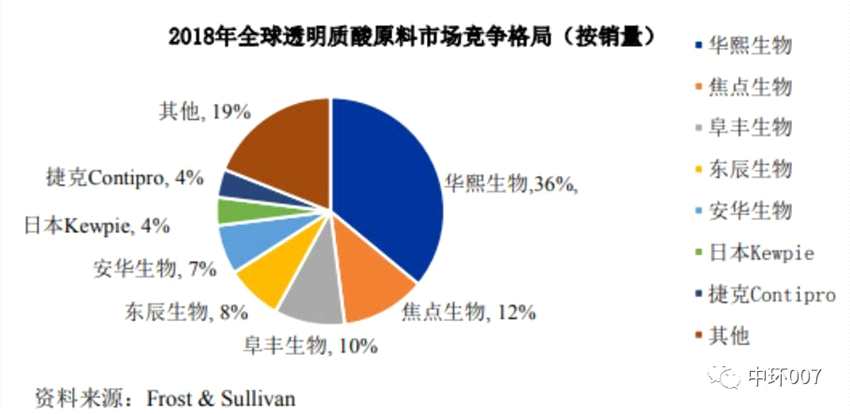 (圖片來(lái)源華熙生物網(wǎng)站)資料顯示,華熙生物是國(guó)內(nèi)唯一同時(shí)擁有發(fā)酵法生產(chǎn)玻璃酸鈉原料藥和藥用輔料批準(zhǔn)文號(hào),并實(shí)現(xiàn)商業(yè)化生產(chǎn)的企業(yè)。2018年該公司生物透明質(zhì)酸(即玻尿酸)原料銷量占據(jù)全球36%份額,位居第一。根據(jù)招股書,公司通過(guò)持續(xù)的中試研究和生產(chǎn)工藝的技術(shù)革新,實(shí)現(xiàn)產(chǎn)能不斷放大,透明質(zhì)酸產(chǎn)量從2000年的0.8噸到2018年達(dá)到近180噸,產(chǎn)業(yè)化規(guī)模位居國(guó)際前列,且全球首次實(shí)現(xiàn)透明質(zhì)酸酶和酶切寡聚透明質(zhì)酸的規(guī)?;a(chǎn)。
