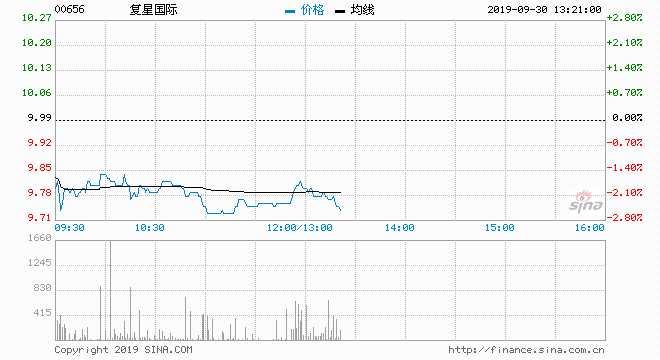 復(fù)星國際(00656) 9.79元 跌2.00%