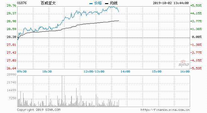 百威亞太(01876) 29.400元 升4.26% 27.00元