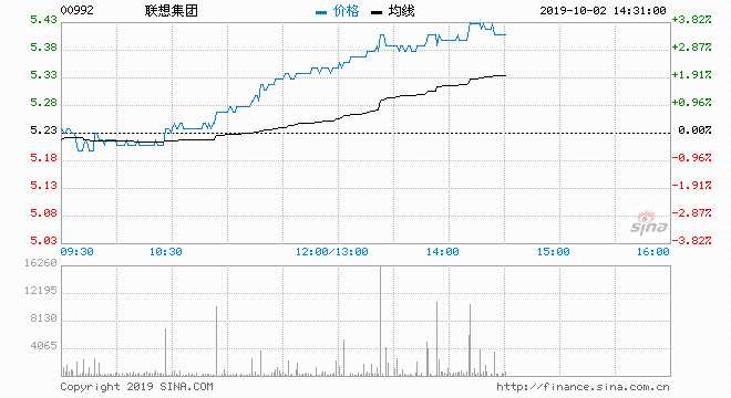 聯(lián)想集團(00992) 5.380元 升2.87%