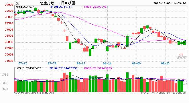10月3日消息,美股周三收跌,道指下跌近500點(diǎn)。對(duì)經(jīng)濟(jì)衰退的擔(dān)憂情緒令美股承壓。ADP就業(yè)數(shù)據(jù)進(jìn)一步證實(shí)美國就業(yè)增長放緩。昨日數(shù)據(jù)顯示美國及全球制造業(yè)活動(dòng)都正在萎縮。今日開盤,港股恒指低開0.81%,再度失守26000點(diǎn),隨后跌幅大幅收窄,午后恒指強(qiáng)勢(shì)翻紅。截至收盤,恒生指數(shù)漲0.26%,重返26000點(diǎn)。百威、美團(tuán)盤中雙雙創(chuàng)新高。醫(yī)藥股、體育用品股走高。