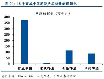 從三巨頭在中國(guó)市場(chǎng)的排名來看,百威在銷量方面低于華潤(rùn)和青啤,排名第三,但憑借領(lǐng)先華潤(rùn)和青啤的噸價(jià),在總營(yíng)收方面,百威于2018年躍居全行業(yè)第一。成就這一點(diǎn)的,正是百威在中國(guó)高端啤酒市場(chǎng)的絕對(duì)領(lǐng)先地位。