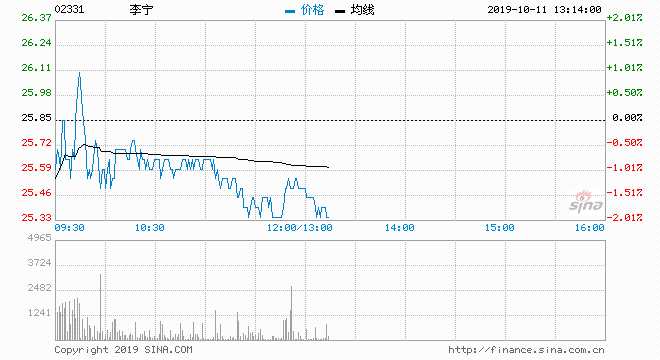 李寧(02331)現(xiàn)跌2.13%,報25.3元,暫為日內(nèi)低位;成交約706萬股,涉資1.81億元。
