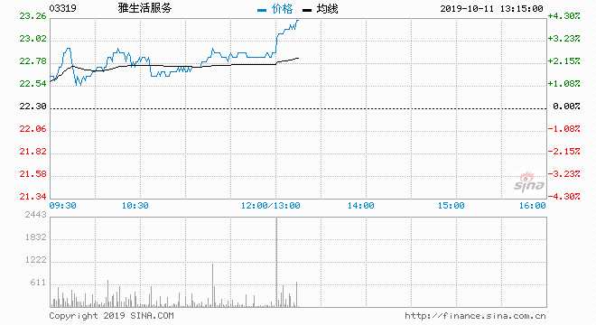 雅生活服務(wù)(03319) 22.65元 上升1.57%