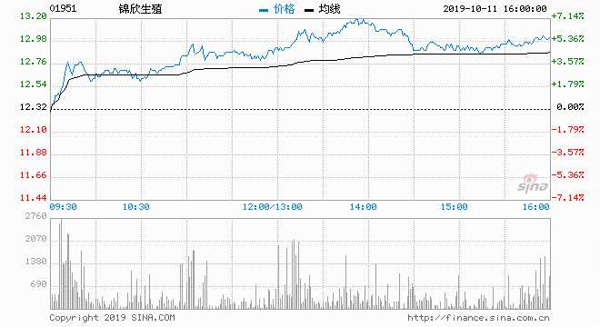 錦欣生殖(01951) 13.10元 上升6.33%