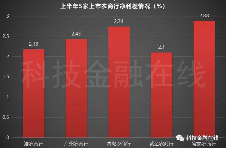 若與今年上半年其它4家同類銀行相比,渝農(nóng)商行的凈利差也排在尾部,僅高于紫金銀行(601860,股吧)凈利差0.08個(gè)百分點(diǎn)。而廣州農(nóng)商行、青島農(nóng)商行、常熟農(nóng)商行上半年的凈利差分別為2.43%、2.74%、2.88%。