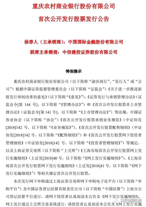 10月11日,渝農(nóng)商行發(fā)布公告稱,本次將采用網(wǎng)下、網(wǎng)上發(fā)行相結(jié)合的方式,公開發(fā)行股票13.57億股,發(fā)行價(jià)格7.36元/股,發(fā)行數(shù)量占發(fā)行后公司總股本的11.95%。