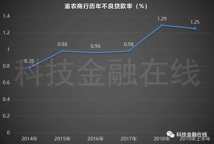 而渝農(nóng)商行以1.25%的不良率排在6家農(nóng)商行第四,但從其歷年的不良率走勢來看,渝農(nóng)商行的不良率正在呈現(xiàn)逐年上升趨勢。