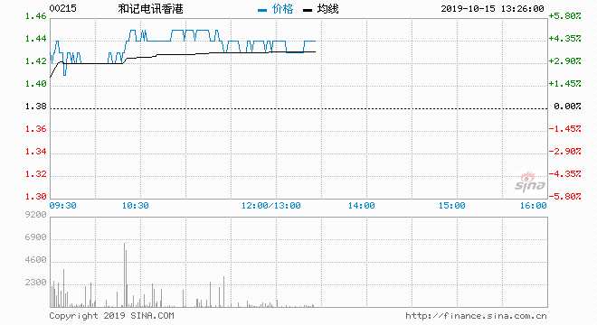 和記電訊(00215) 1.42元 升2.90%