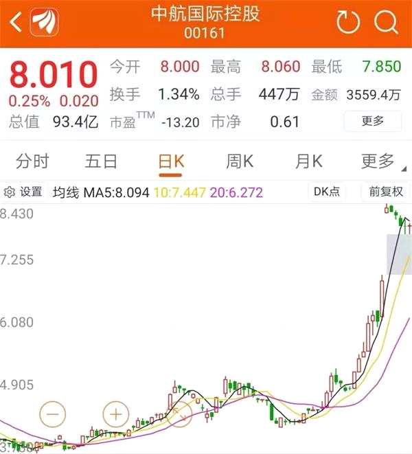 都漲到這份上了,市場的各種猜測驟起,急漲的股價必然背后因要事支撐,否則在港股市場里,漲的再高也能在極短時間內打趴下,中小盤的股價無事獻殷勤,跟風的投資者很容易吃大虧,這意味著中航國際控股股價背后很可能是有大事發(fā)生。