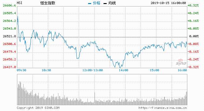 摘要: 10月15日消息,美股周一小幅收跌。投資者仍在評(píng)估國(guó)際貿(mào)易關(guān)系的進(jìn)展。WTO周一正式授權(quán)美國(guó)對(duì)最多75億美元的歐盟進(jìn)口商品加稅。今日開(kāi)盤(pán),恒指高開(kāi)0.33%,隨后轉(zhuǎn)跌在26500點(diǎn)上下震蕩。截至收盤(pán),