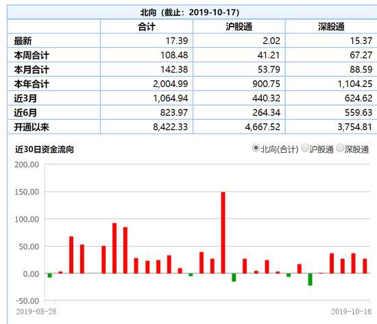 北向資金流入17.39億元 今年以來(lái)凈流入2004.99億元