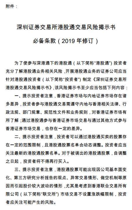 關(guān)于修訂《深圳證券交易所港股通交易風(fēng)險(xiǎn)揭示書必備條款》的通知