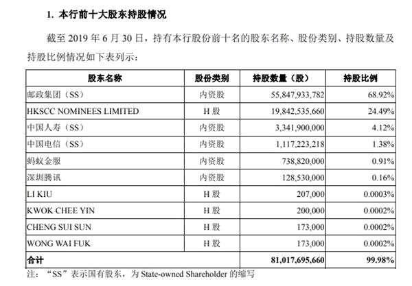 郵儲銀行前十大股東可謂巨頭云集。2015年12月,郵儲銀行成功引入螞蟻金服、騰訊、中國人壽等國際知名金融機(jī)構(gòu)、大型國有企業(yè)和互聯(lián)網(wǎng)企業(yè)等十家境內(nèi)外知名機(jī)構(gòu)作為戰(zhàn)略投資者,“引戰(zhàn)”融資451億元人民幣,創(chuàng)造了中國金融企業(yè)私募股權(quán)融資單次規(guī)模之最。2016年9月28日,郵儲銀行在香港交易所主板成功上市,募集資金總額達(dá)591.5億港元,創(chuàng)造了彼時近5年來最大的H股IPO。